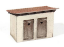 Storage shed with office, cardboard, lasered, storage shed with Freiburg Wiehre office around 1930, laser-engraved and cut; UHU-hard glue.